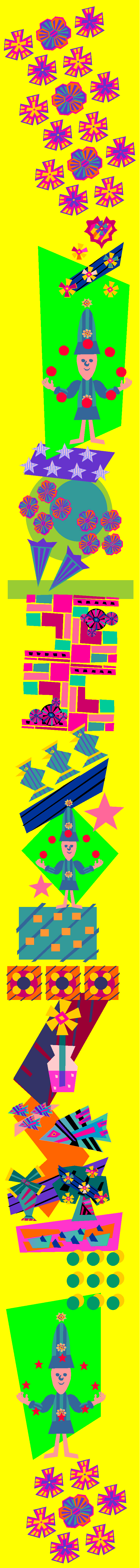 This fun, colorful graphic image features birds, fish, and flowery scenes – and you’ll also come across an endearing little fellow in your mini-journey through it… Scroll down the long image and let it take you on a little “mind excursion” as it juggles with your mind!