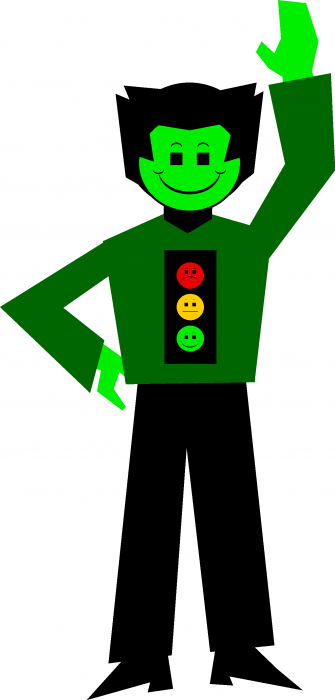 Meet Gordy “Go For It” Greenfalloon, the cheerful, upbeat member of the Moody Stoplight Trio! He’s always on the go, and one of his favorite mottoes is “Fire-Aim-Ready!