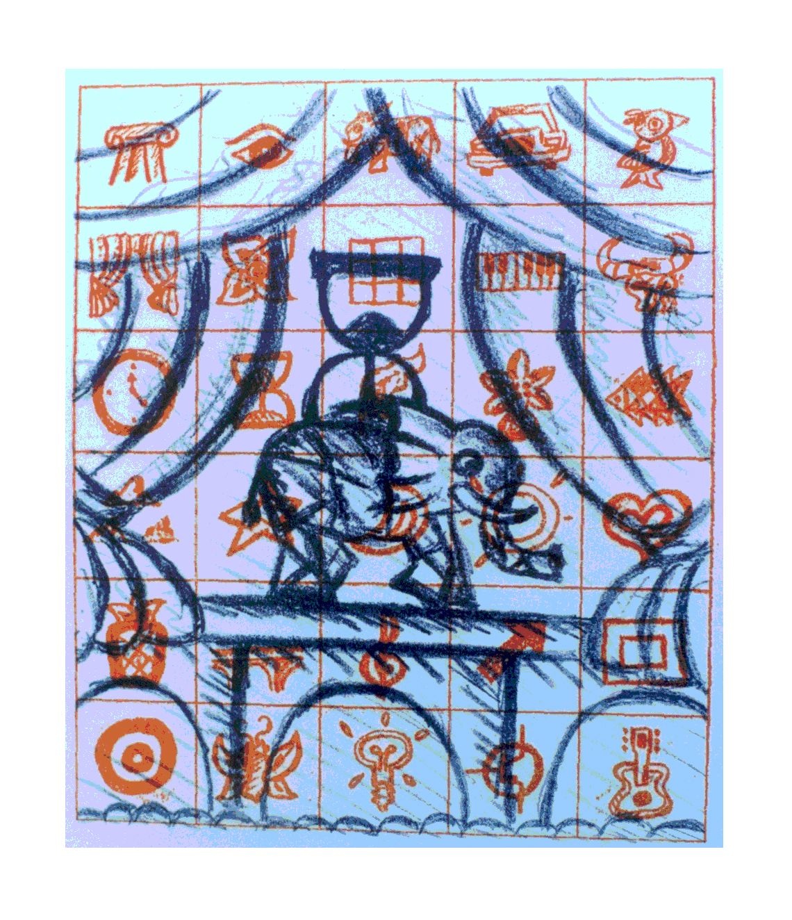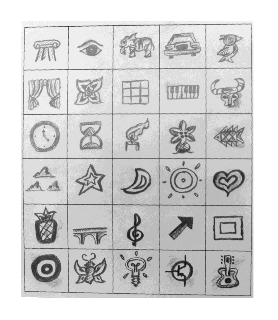 I was experimenting with building pictures out of smaller pictures, or elements. Here is a table of the elements from which to choose from: