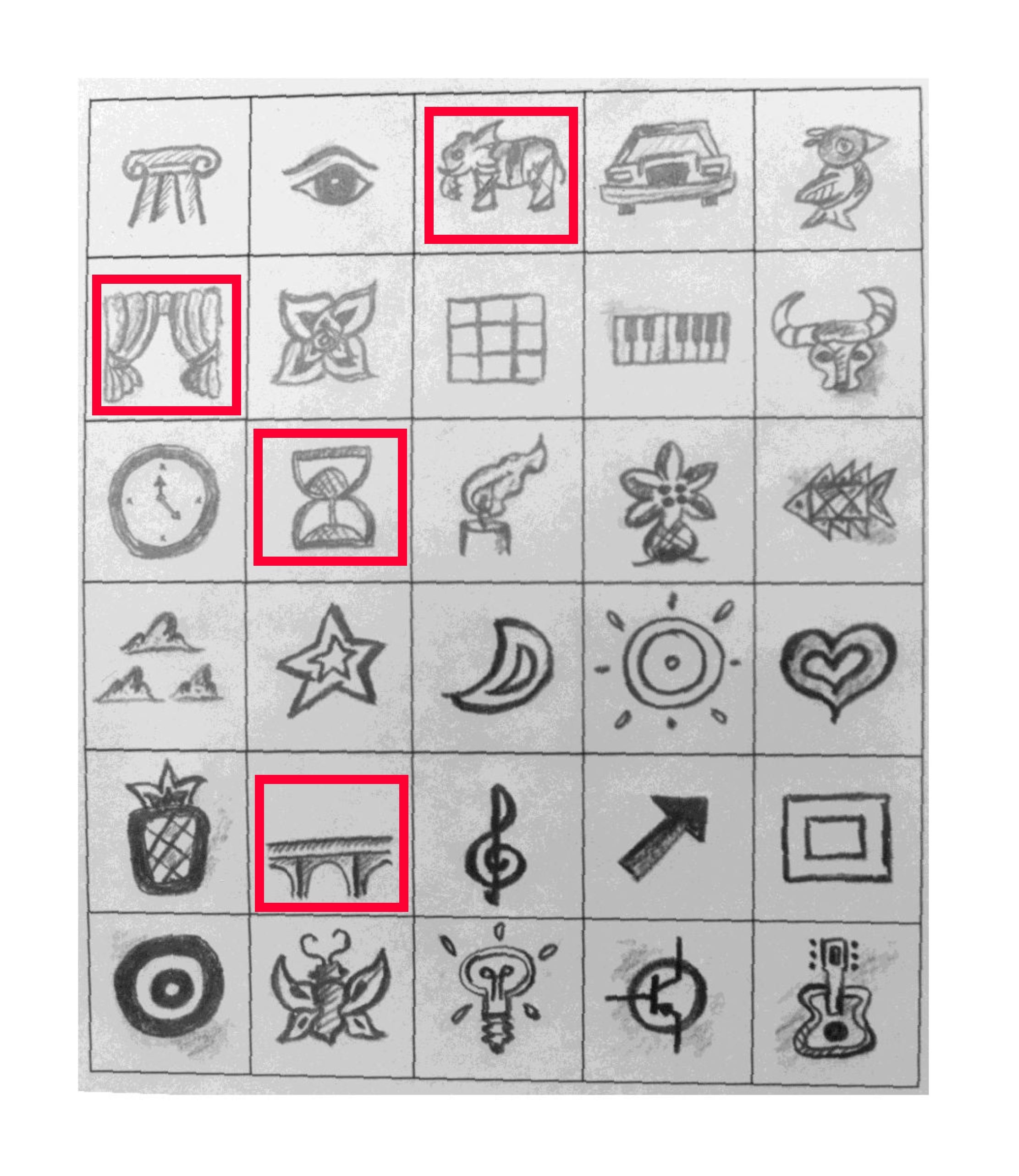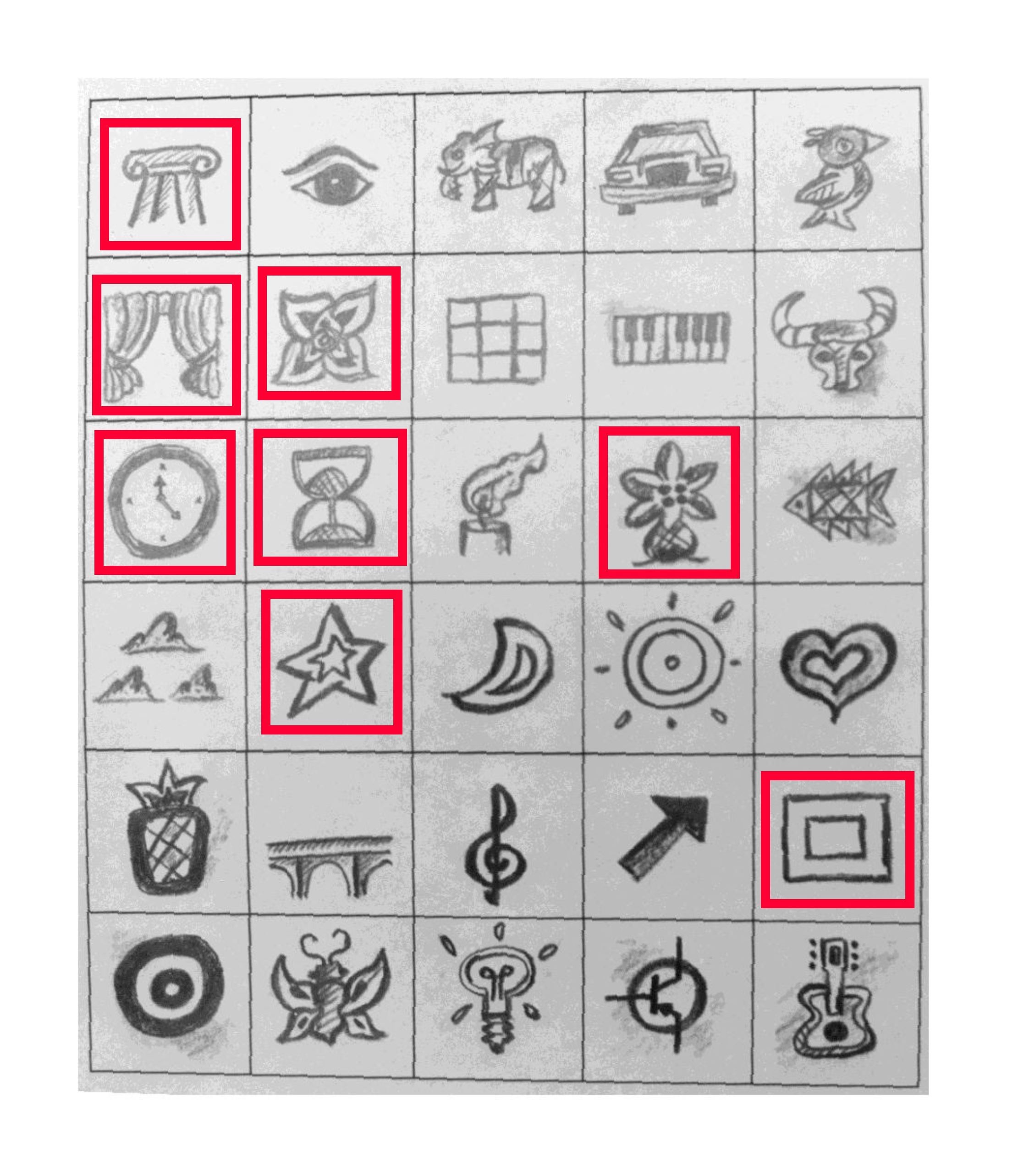 Next, I will choose different elements from the table – (in this case, the Clock, Hourglass, Palm Tree, Flower, Ionic Column, Star, Curtains, and Double Rectangles) –