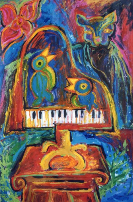 Often when I am writing, or creating artwork, I can hear the sound of birds singing outside. I once decided to step outside and just listen to what kinds of “songs” they sing. I ended up hearing many different kinds of bird songs, coming from far and near. The cardinals on the telephone wire, the sparrows in the bushes, the doves on the grass, and the mynah birds that strutted along the top of a fence – they all had different songs.
